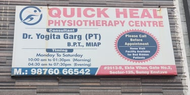 Quick Heal Physiotherapy Centre is led by Dr. Yogita Garg (BPT, MIAP), who has over 19 years of experience in providing physiotheraoy treatment patients with knee pain, back pain, neck pain, joint pain, and sciatica. We have built a strong reputation for providing high-quality treatment. Our main goal is to offer excellent, client-focused care in a friendly atmosphere. This helps you return to a healthy, active lifestyle. Our skilled therapists have years of experience with various injuries and conditions. Whether you have a new injury or have been dealing with ongoing pain, our quality care can help you recover. We also provide hands-on manual therapy for all our clients.