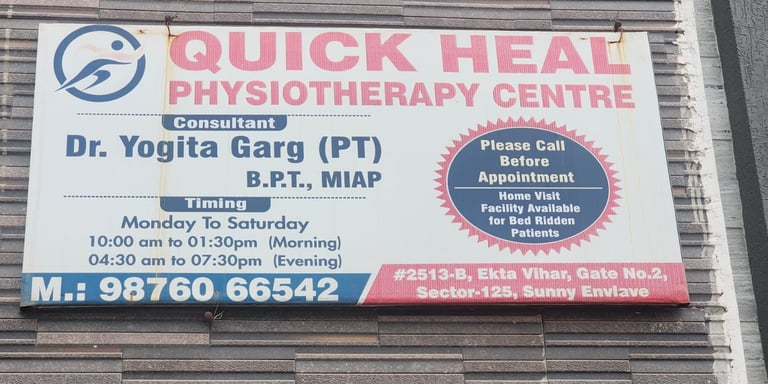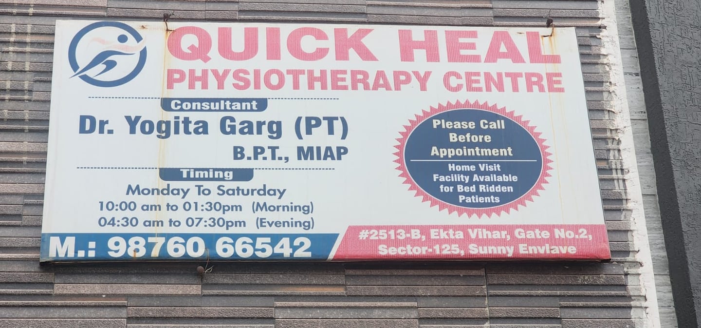 Quick Heal Physiotherapy Centre is led by Dr. Yogita Garg (BPT, MIAP), who has over 19 years of experience in providing physiotheraoy treatment patients with knee pain, back pain, neck pain, joint pain, and sciatica. We have built a strong reputation for providing high-quality treatment. Our main goal is to offer excellent, client-focused care in a friendly atmosphere. This helps you return to a healthy, active lifestyle. Our skilled therapists have years of experience with various injuries and conditions. Whether you have a new injury or have been dealing with ongoing pain, our quality care can help you recover. We also provide hands-on manual therapy for all our clients.
